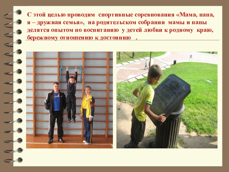семья», на родительском собрании мамы и папы делятся опытом по воспитанию у детей любви к родному краю, бережному отношению к достоянию .