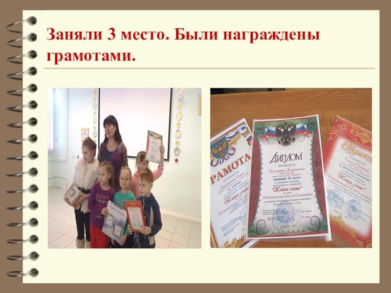 Слайд 66Заняли 3 место. Были награждены грамотами.