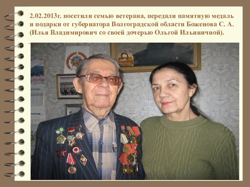 Слайд 462.02.2013г. посетили семью ветерана, передали памятную медаль и подарки от губернатора