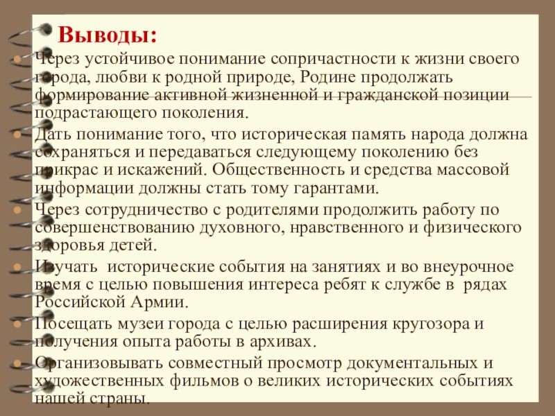 Изучать исторические события на занятиях и во внеурочное время с целью повышения интереса ребят к службе в рядах Российской Армии.