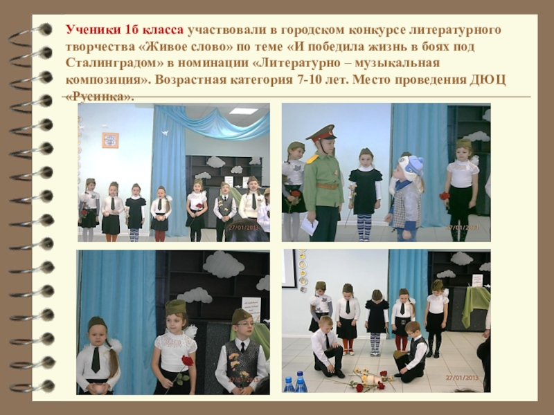 Слайд 65Ученики 1б класса участвовали в городском конкурсе литературного творчества «Живое слово»