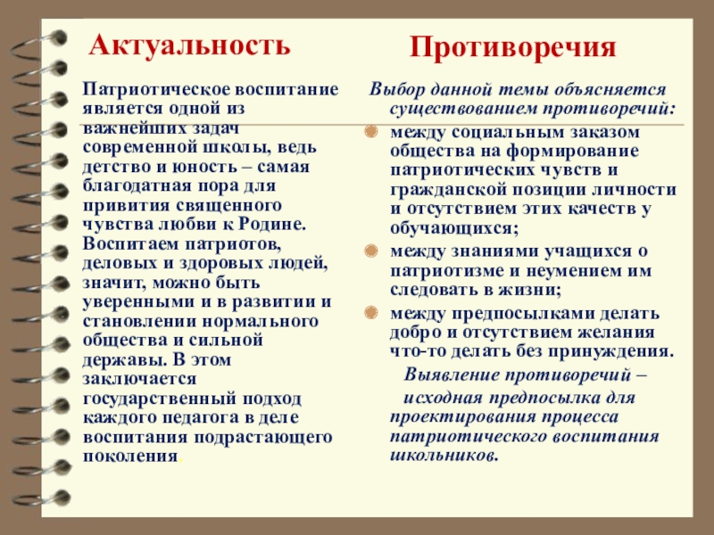между социальным заказом общества на формирование патриотических чувств и гражданской позиции личности и отсутствием этих качеств у обучающихся;