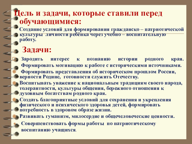 родной природе, Родине продолжать формирование активной жизненной и гражданской позиции подрастающего поколения.