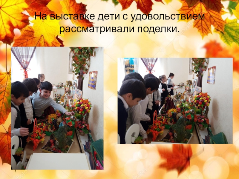 Слайд 9На выставке дети с удовольствием рассматривали поделки.