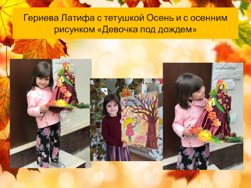 Слайд 7Гериева Латифа с тетушкой Осень и с осенним рисунком «Девочка под