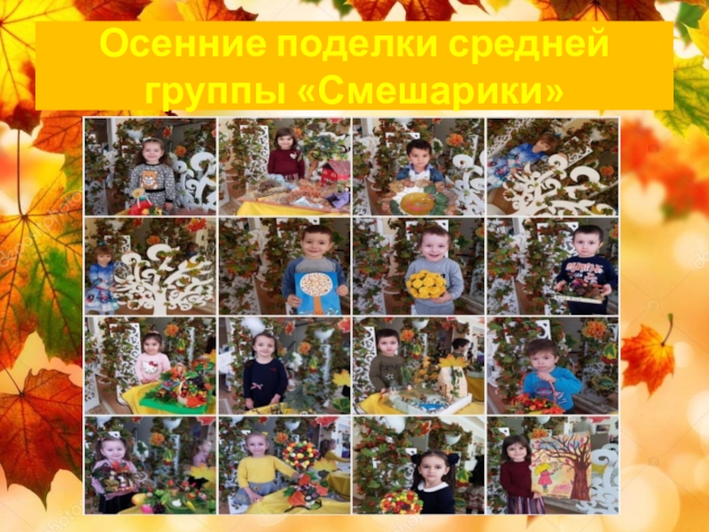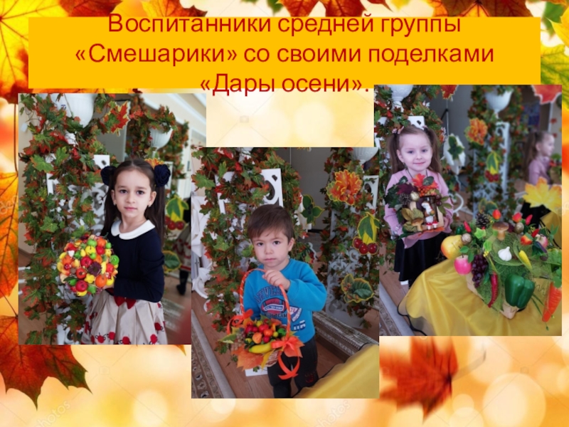Слайд 5Воспитанники средней группы «Смешарики» со своими поделками «Дары осени».