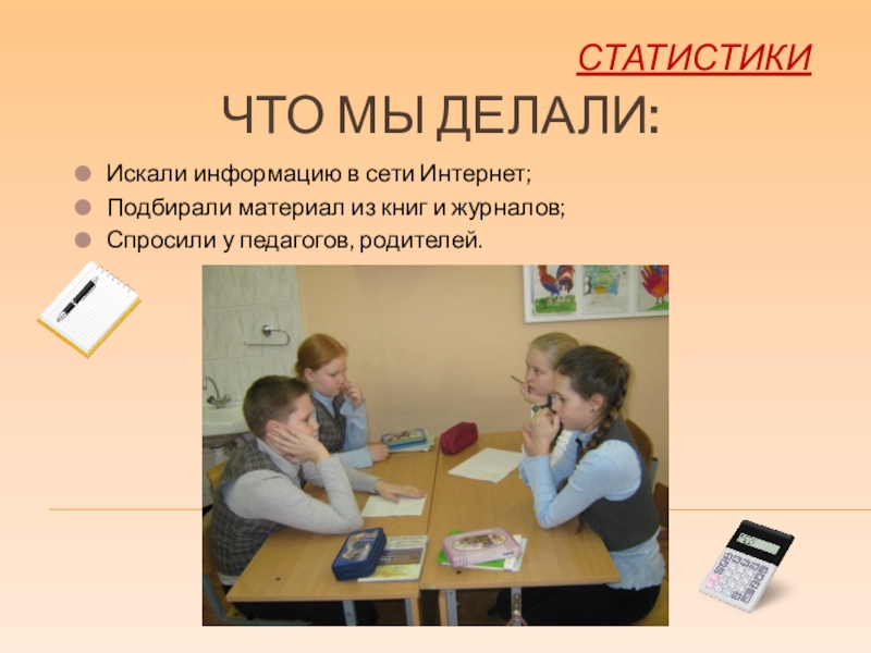 Это сайт презентаций, где можно хранить и обмениваться своими презентациями, докладами, проектами, шаблонами в формате PowerPoint с другими пользователями. Мы помогаем школьникам, студентам, учителям, преподавателям хранить и обмениваться учебными материалами.