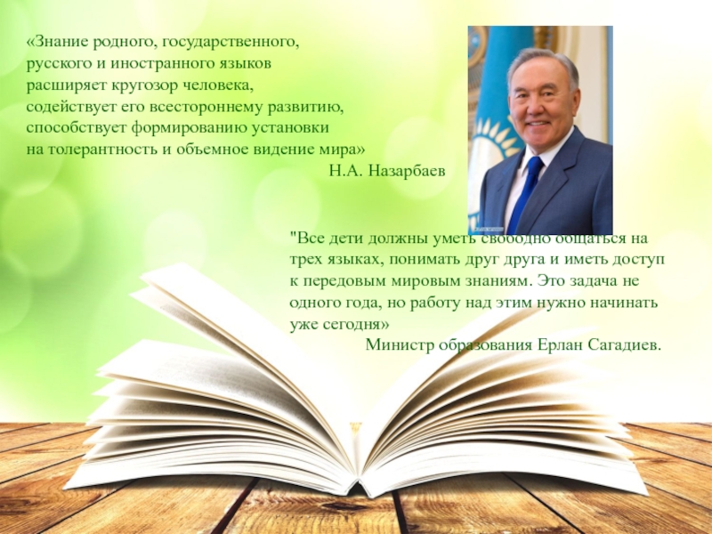 "Все дети должны уметь свободно общаться на трех языках, понимать друг друга и иметь доступ к передовым мировым знаниям. Это задача не одного года, но работу над этим нужно начинать уже сегодня»