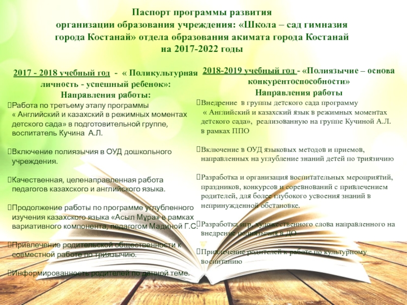 Качественная, целенаправленная работа педагогов казахского и английского языка.