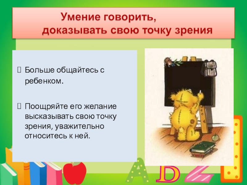Поощряйте его желание высказывать свою точку зрения, уважительно