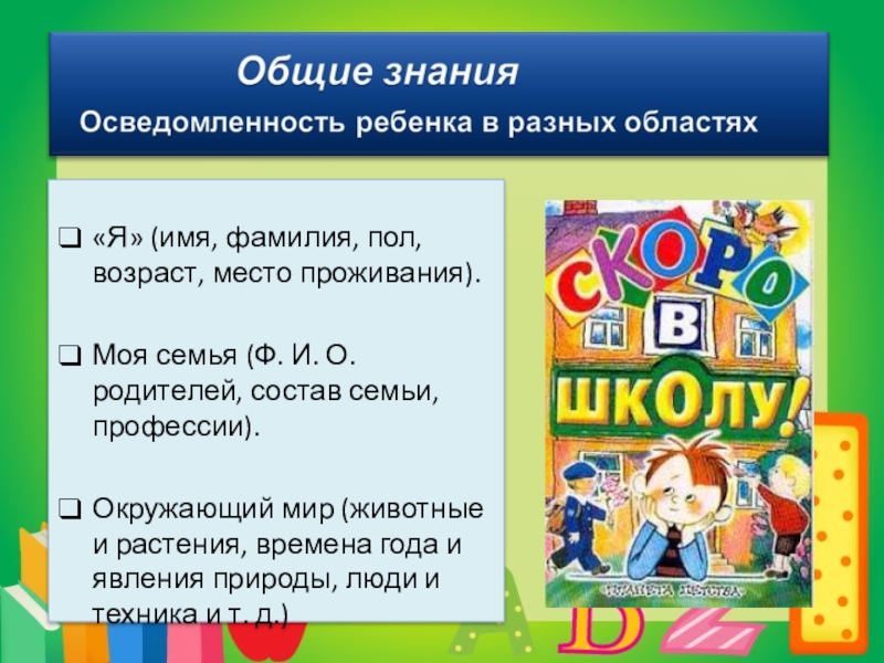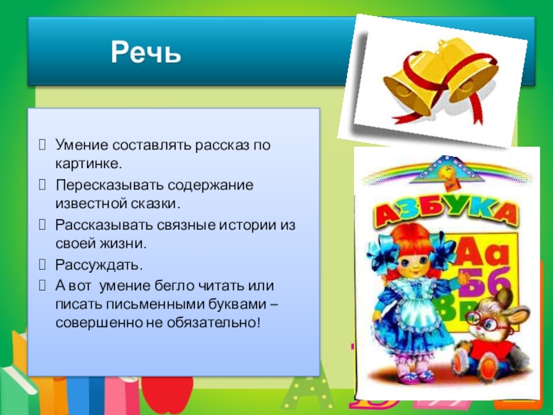 Уверенность в себе, Психологическая готовность Речевое развитие в своих силах и ребенка к школе возможностях