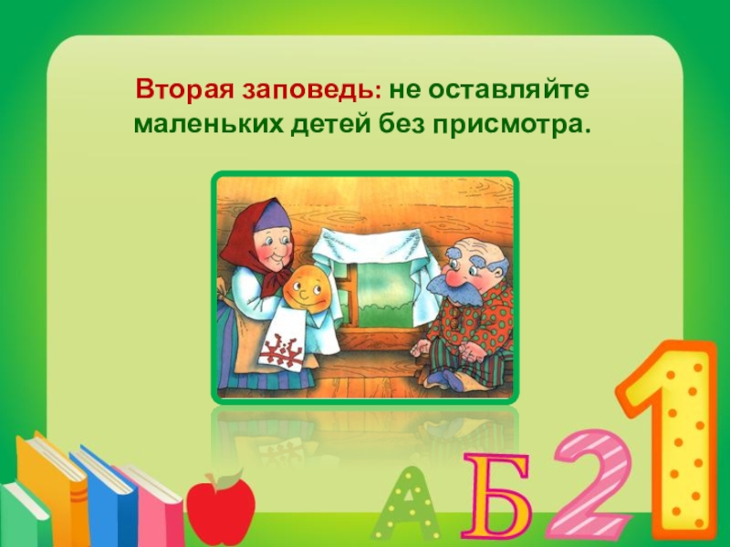 Слайд 5Вторая заповедь: не оставляйте маленьких детей без присмотра.