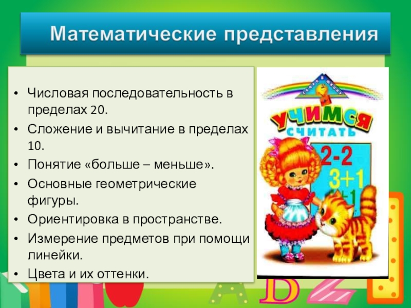 умение ориентироваться в числовом ряду ( «соседи» числа 5 – это 4 и 6);