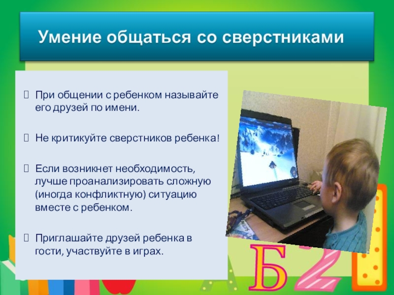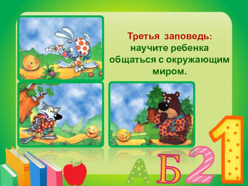 Слайд 6Третья заповедь: научите ребенка общаться с окружающим миром.