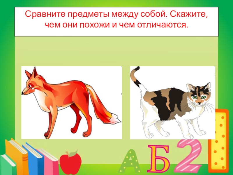 Слайд 51Сравните предметы между собой. Скажите, чем они похожи и чем отличаются.
