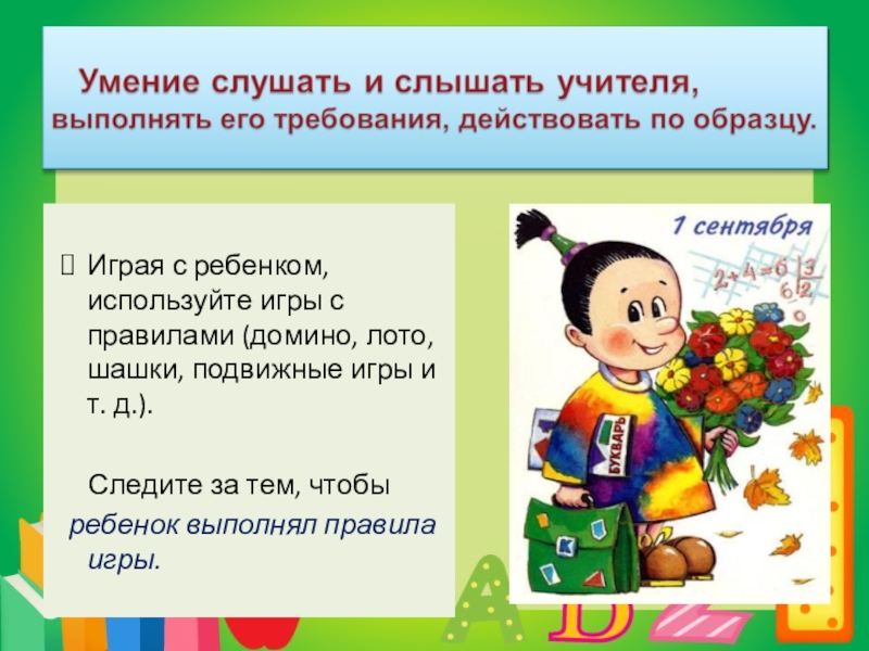 Играя с ребенком, используйте игры с правилами (домино, лото, шашки, подвижные