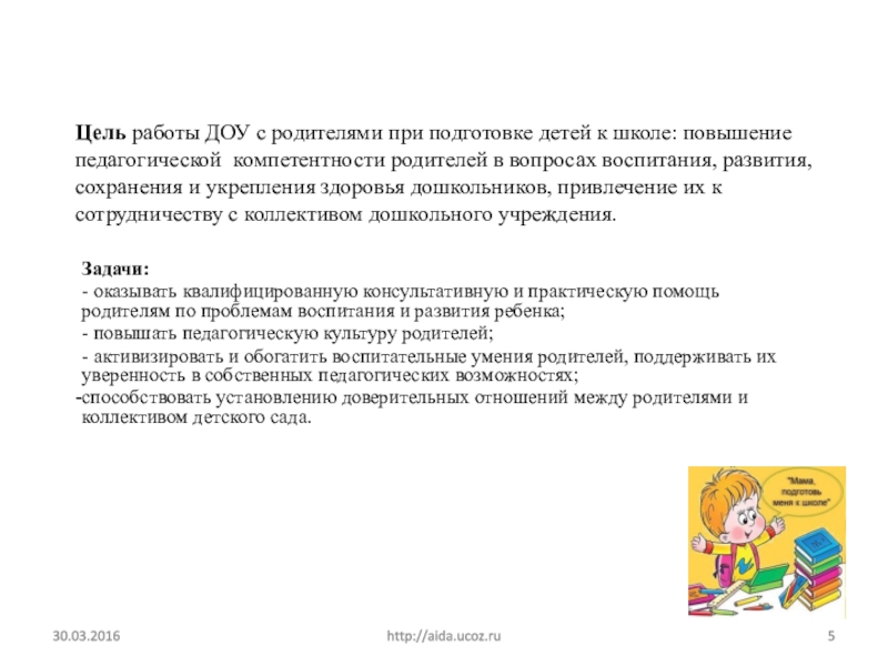 - повышать педагогическую культуру родителей;