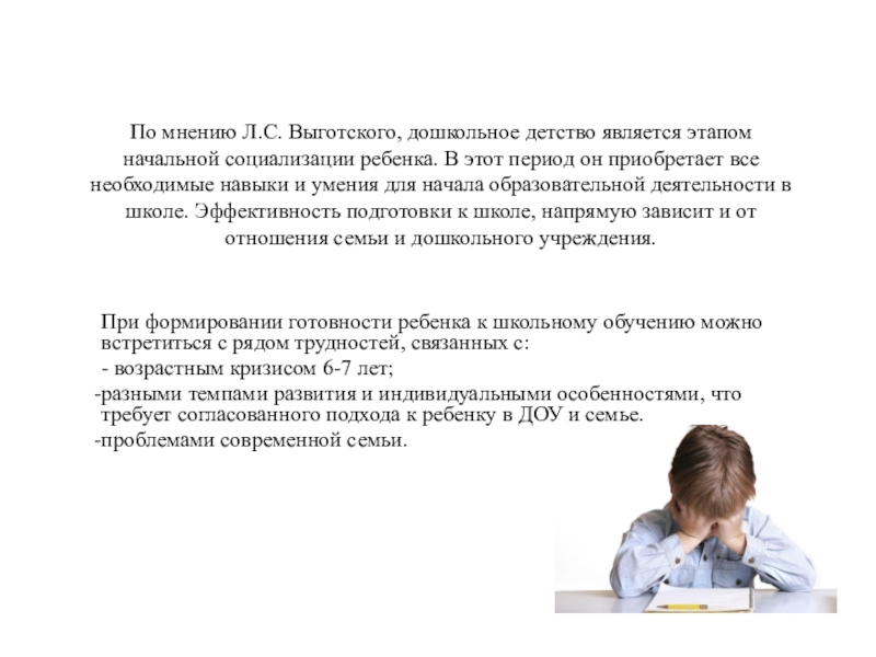 При формировании готовности ребенка к школьному обучению можно встретиться с рядом трудностей, связанных с: