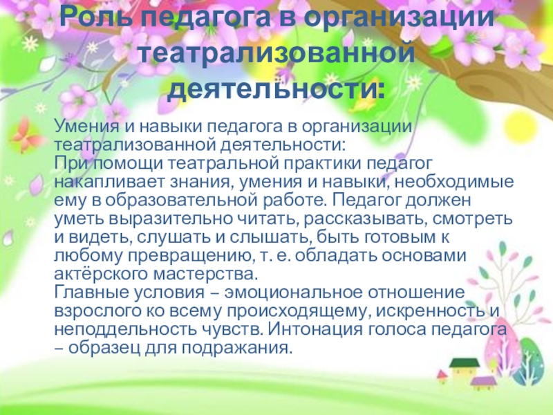 Слайд 7Роль педагога в организации театрализованной деятельности: