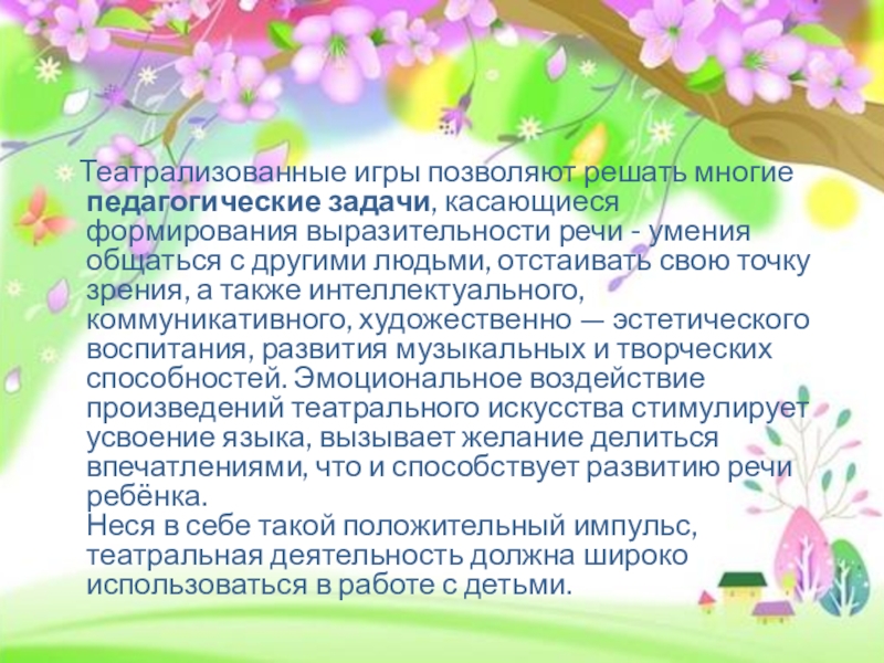 Слайд 4 Театрализованные игры позволяют решать многие педагогические задачи, касающиеся формирования