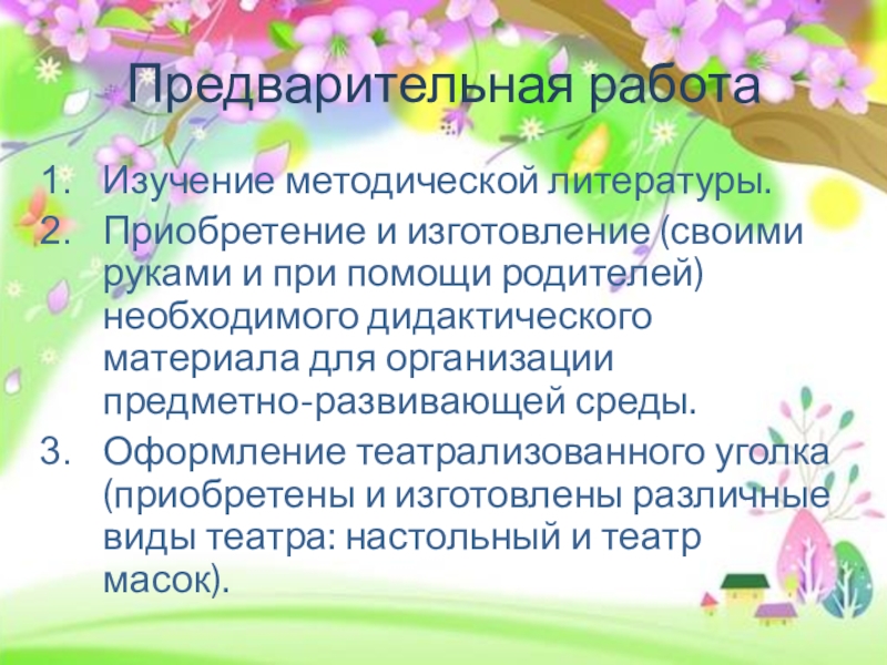 родителей) необходимого дидактического материала для организации предметно-развивающей среды.