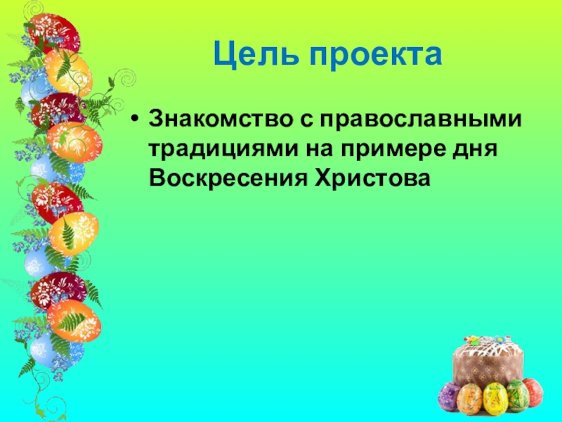 1. Образовательная: изучить историю возникновения христианского праздника Пасха, его традиции