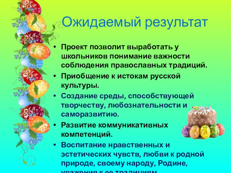 Проект позволит выработать у школьников понимание важности соблюдения православных традиций.