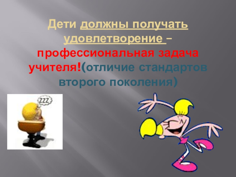Слайд 16Дети должны получать удовлетворение – профессиональная задача учителя!(отличие стандартов второго поколения)