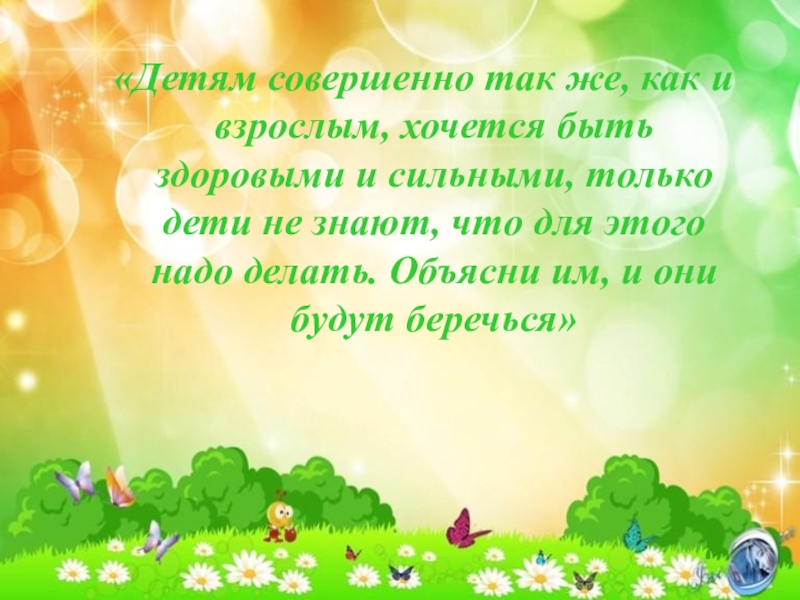 Слайд 2«Детям совершенно так же, как и взрослым, хочется быть здоровыми и
