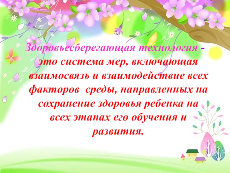 Здоровьесберегающая технология - это система мер, включающая взаимосвязь и взаимодействие всех