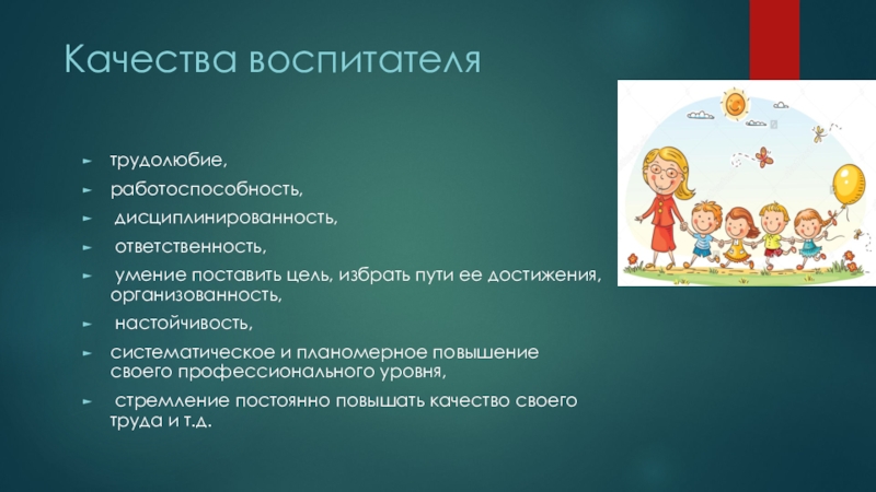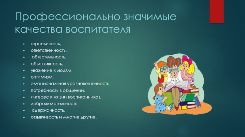 Слайд 10Профессия воспитателя сложна и ответственна.