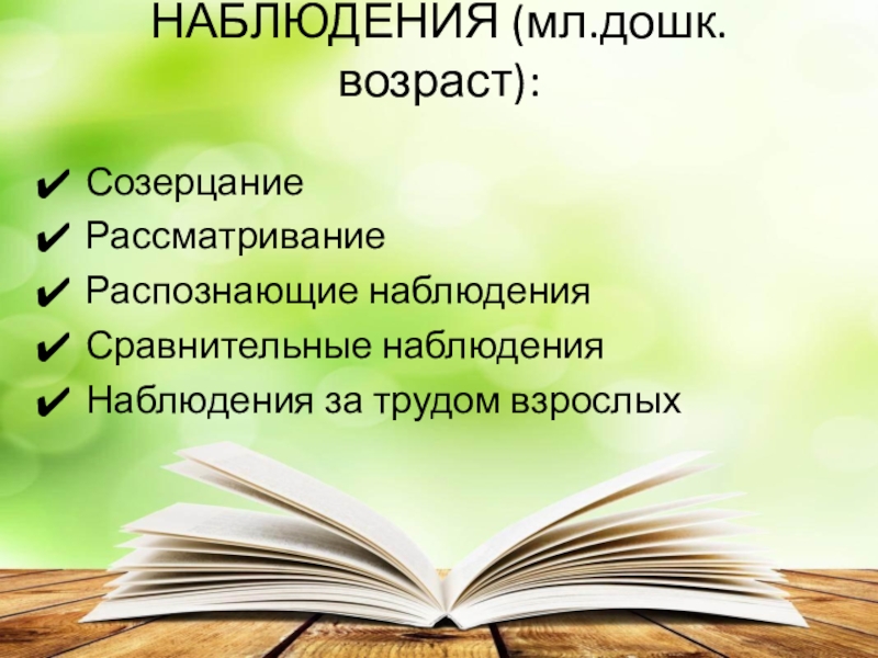 Слайд 5НАБЛЮДЕНИЯ (мл.дошк.возраст):
