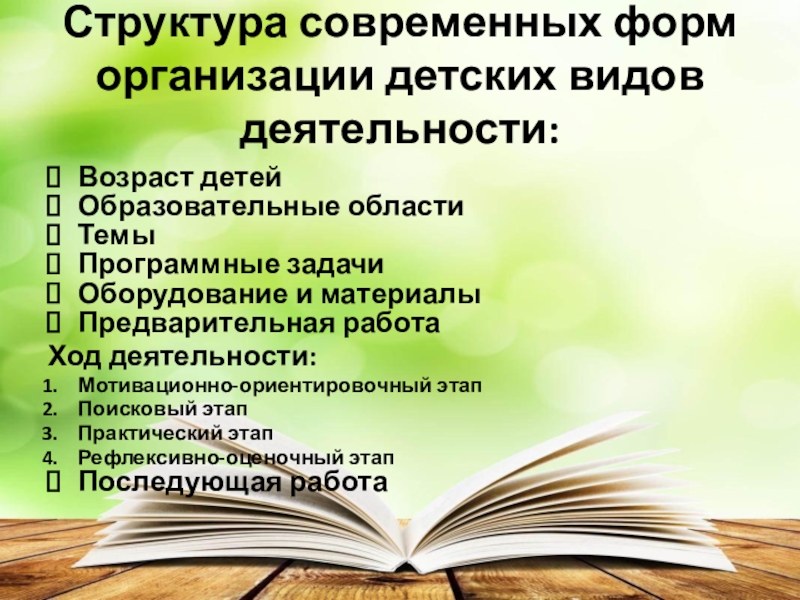 Слайд 3Структура современных форм организации детских видов деятельности: