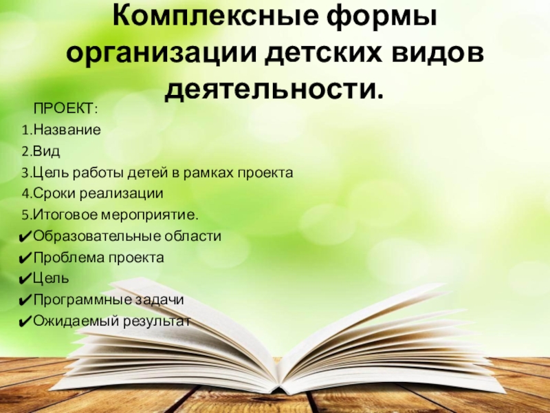 Слайд 25Комплексные формы организации детских видов деятельности.