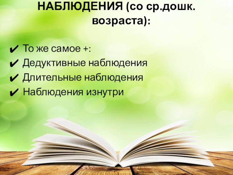 Слайд 6НАБЛЮДЕНИЯ (со ср.дошк.возраста):
