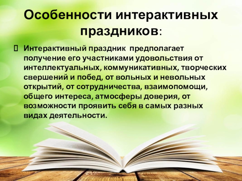 Интерактивный праздник предполагает получение его участниками удовольствия от интеллектуальных,