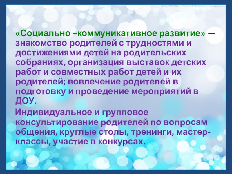 «Социально –коммуникативное развитие» — знакомство родителей с трудностями и достижениями детей