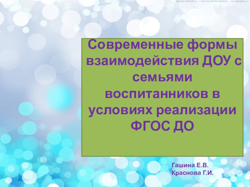 Слайд 1Современные формы взаимодействия ДОУ с семьями воспитанников в условиях реализации