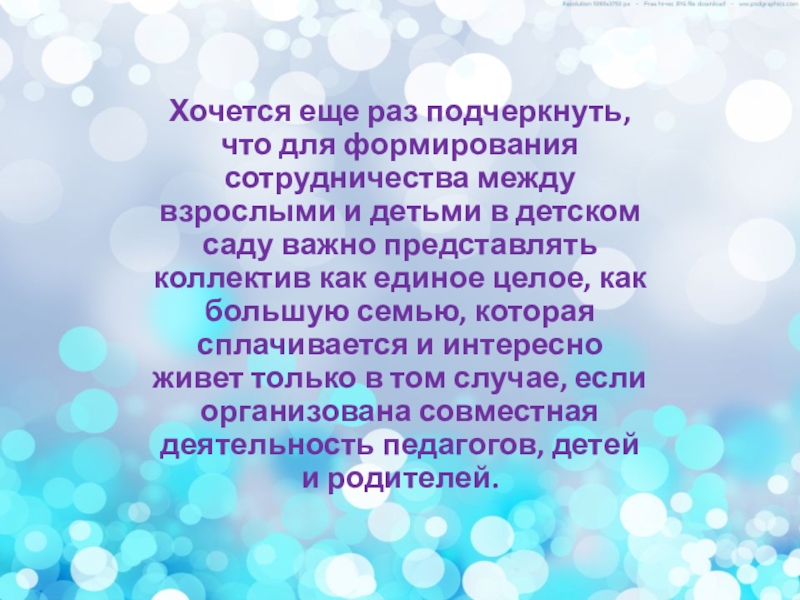 Хочется еще раз подчеркнуть, что для формирования сотрудничества между взрослыми и