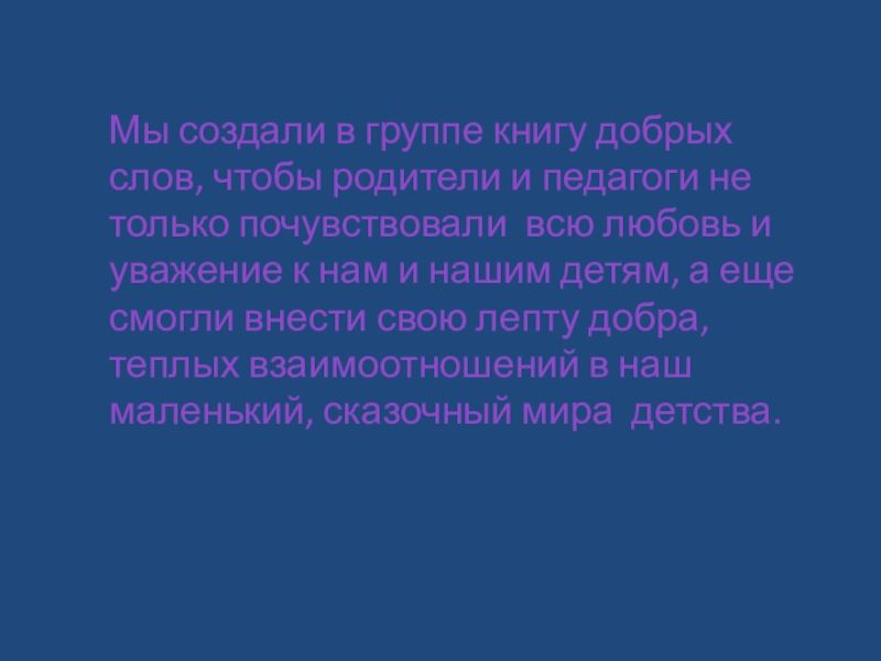 Слайд 10Мы создали в группе книгу добрых слов, чтобы родители и педагоги