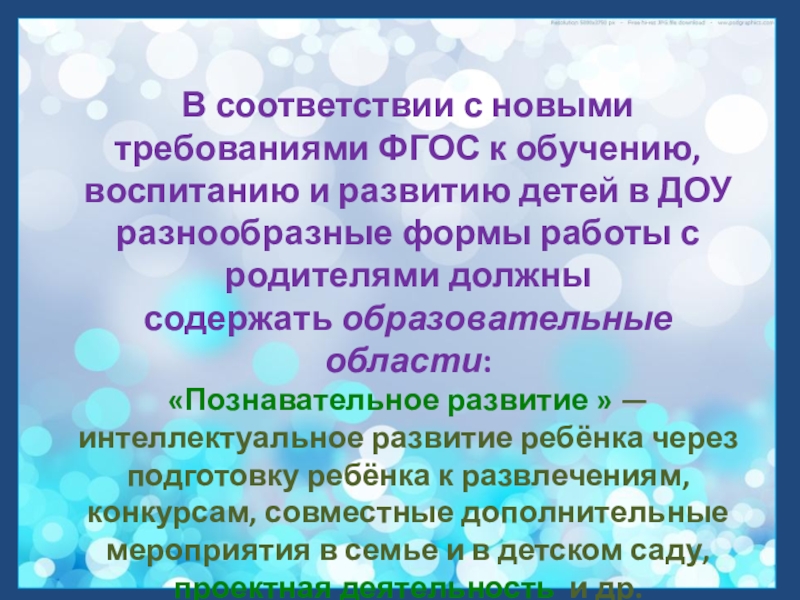 детей в ДОУ разнообразные формы работы с родителями должны содержать образовательные области: