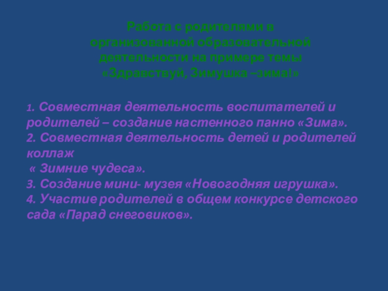 Слайд 14Работа с родителями по теме «Здравствуй, Зимушка-Зима!"