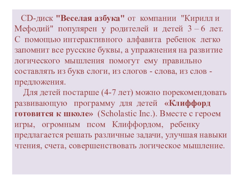 Слайд 20 CD-диск "Веселая азбука" от компании "Кирилл и Мефодий" популярен у