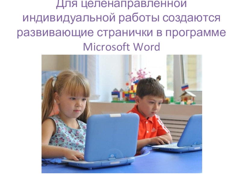 Слайд 13Для целенаправленной индивидуальной работы создаются развивающие странички в программе Microsoft Word