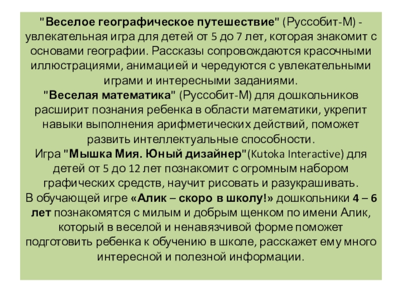 Слайд 21"Веселое географическое путешествие" (Руссобит-М) - увлекательная игра для детей от 5 до