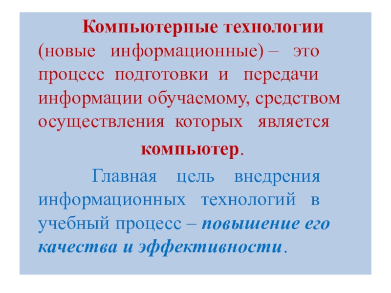 Слайд 2 Компьютерные технологии (новые информационные)
