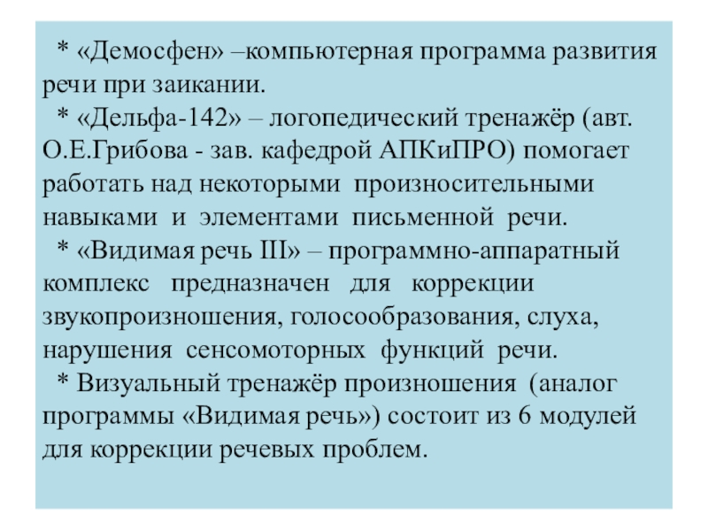 Слайд 17 * «Демосфен» –компьютерная программа развития речи при заикании.
