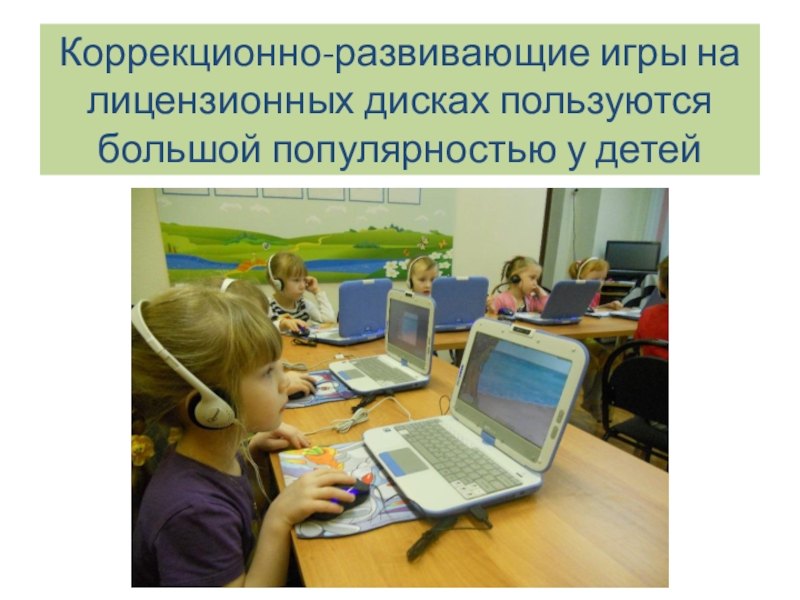 Слайд 12Коррекционно-развивающие игры на лицензионных дисках пользуются большой популярностью у детей