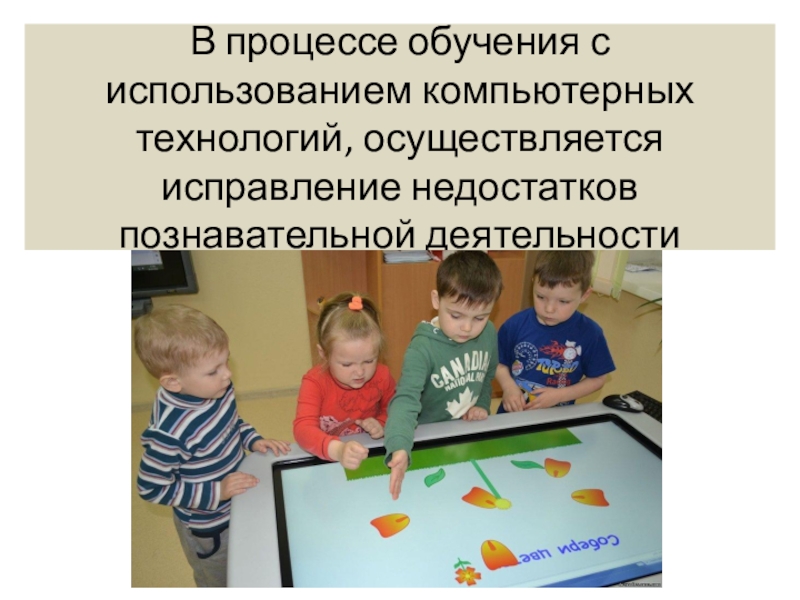 Слайд 4В процессе обучения с использованием компьютерных технологий, осуществляется исправление недостатков познавательной