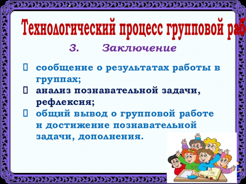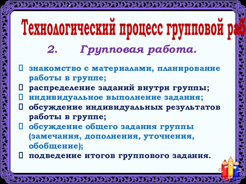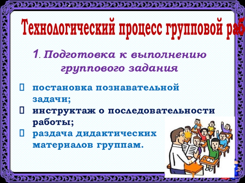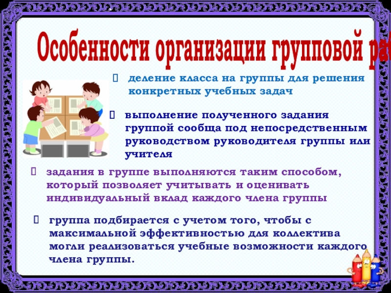 выполнение полученного задания группой сообща под непосредственным руководством руководителя группы или учителя